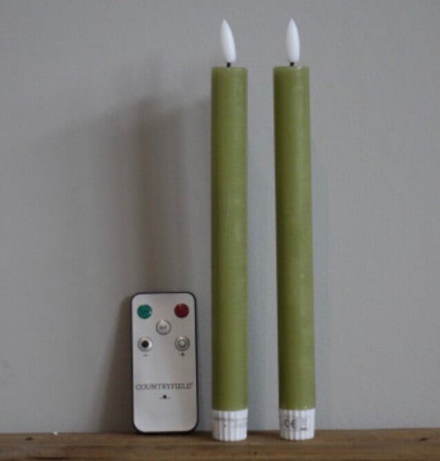 Countryfield LED Dinerkaarsen Groen – 23cm | Set van 2 Incl. Afstandsbediening