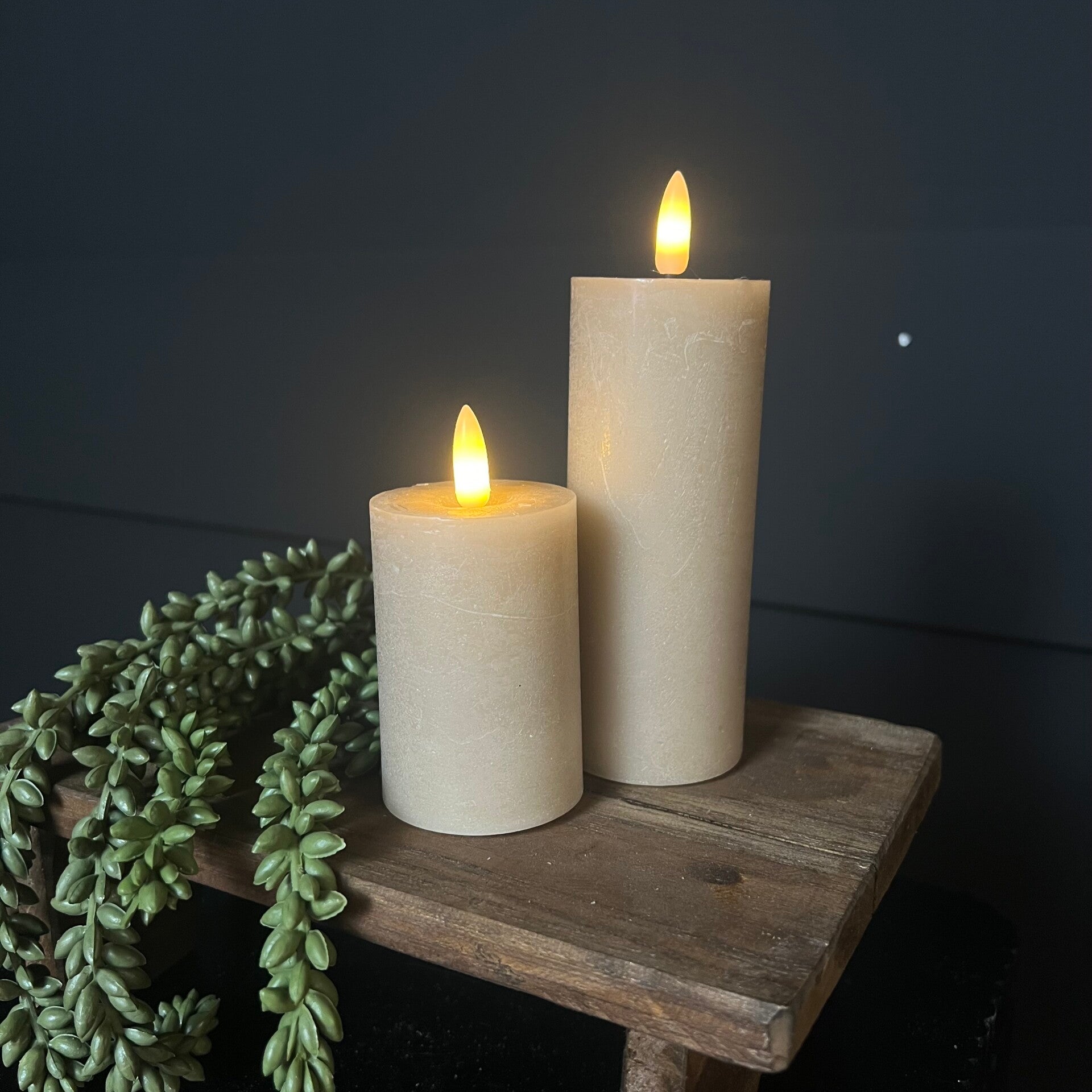 Smalle LED Stompkaarsen Taupe – Verkrijgbaar in 2 Maten