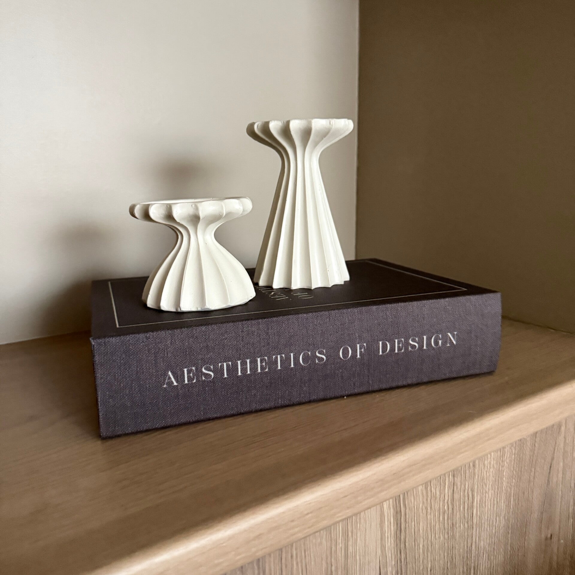 Minimalistische setting: Less is more – plaats één grote ‘Sidari’ op een strak wit plankje of in een open kast. Combineer met een beige of crèmekleurige kaars voor een ton-sur-ton effect dat rust en balans uitstraalt.