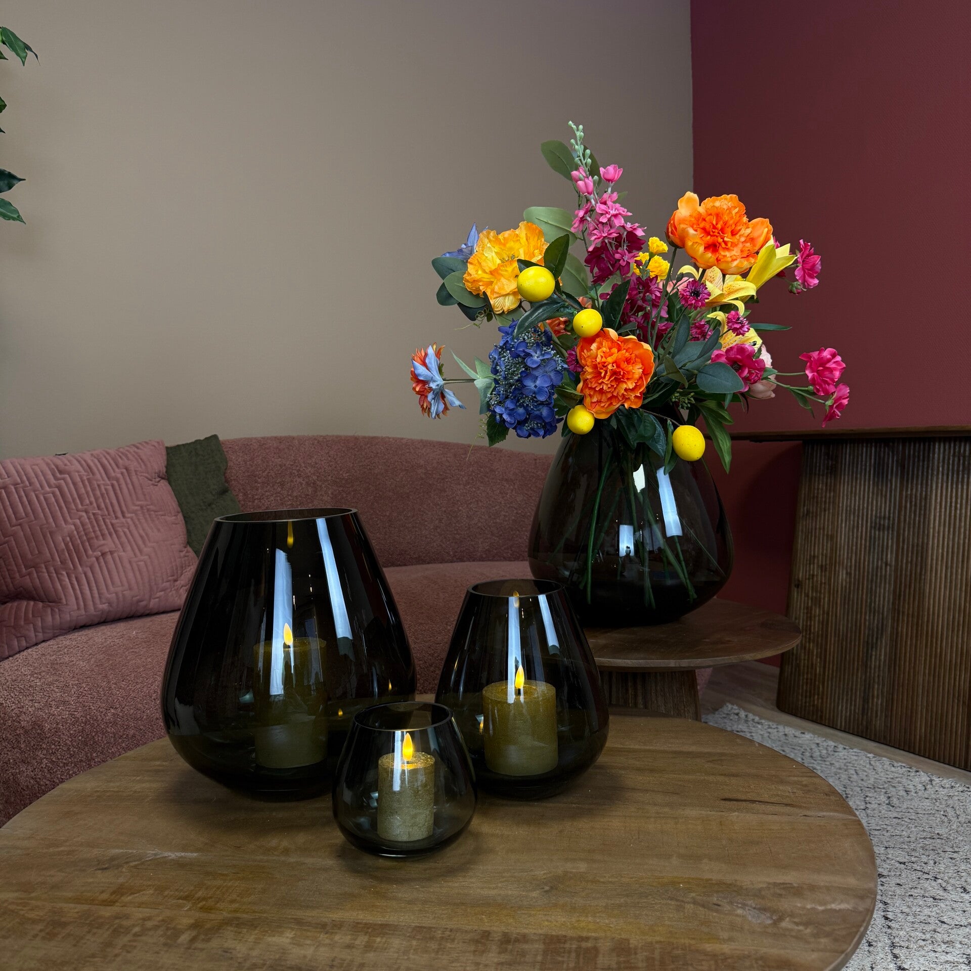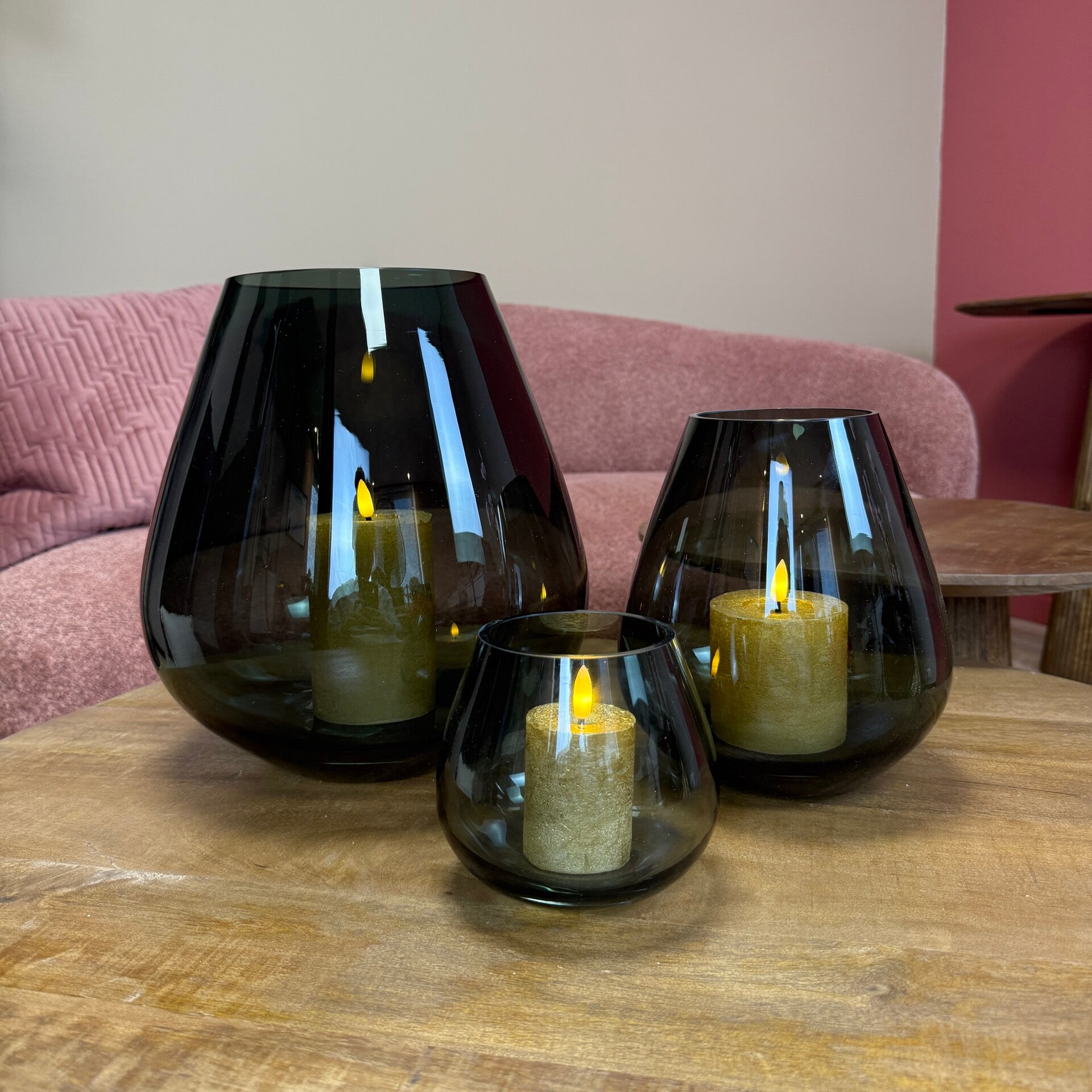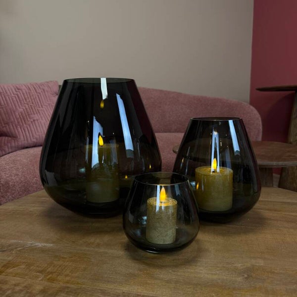 Peervormig Windlicht ‘Tasman’ | Smoke Glass | Vase The World | Verkrijgbaar in 3 maten