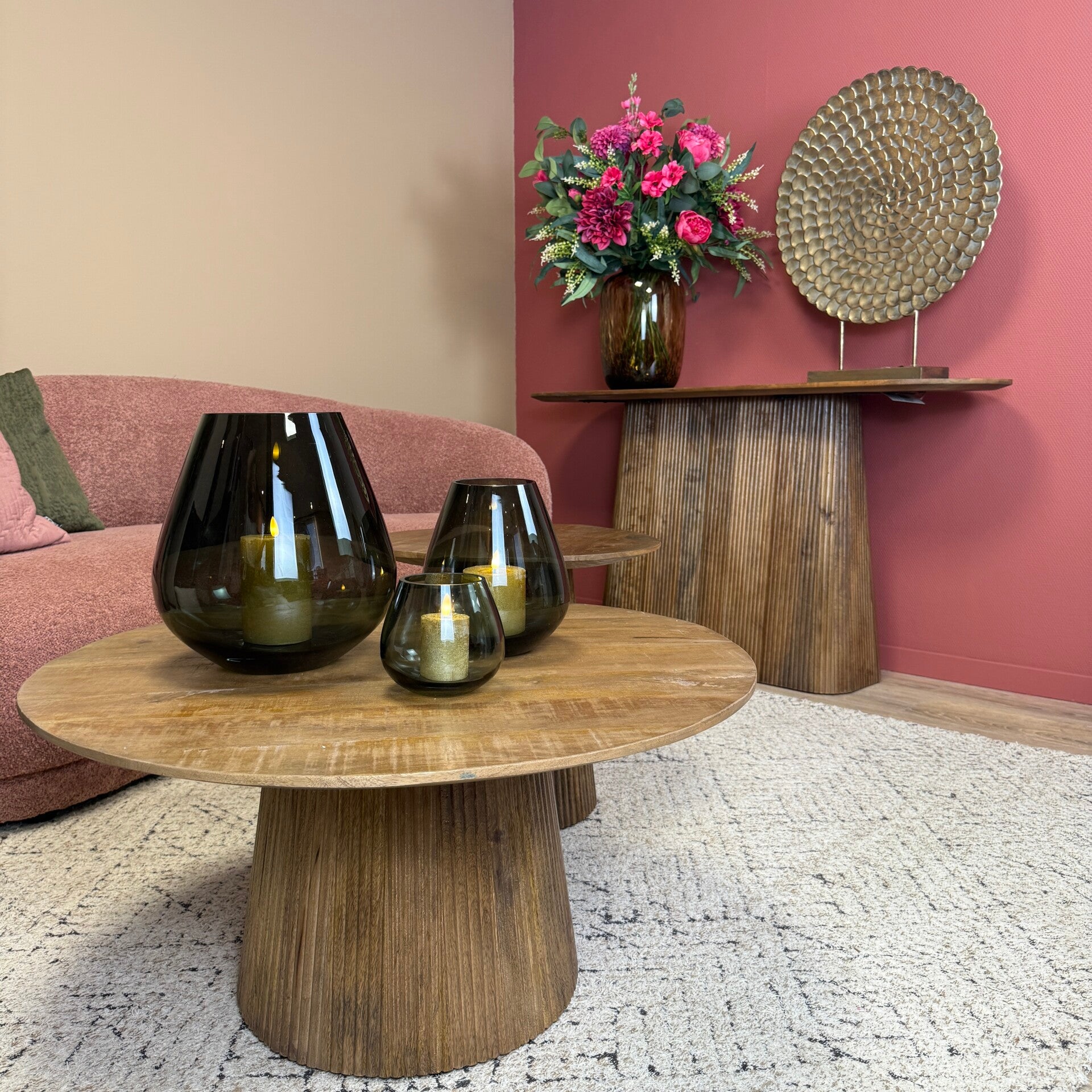 Samen vormen de verschillende maten een prachtige set die ideaal is voor op een tafel, dressoir of vensterbank.