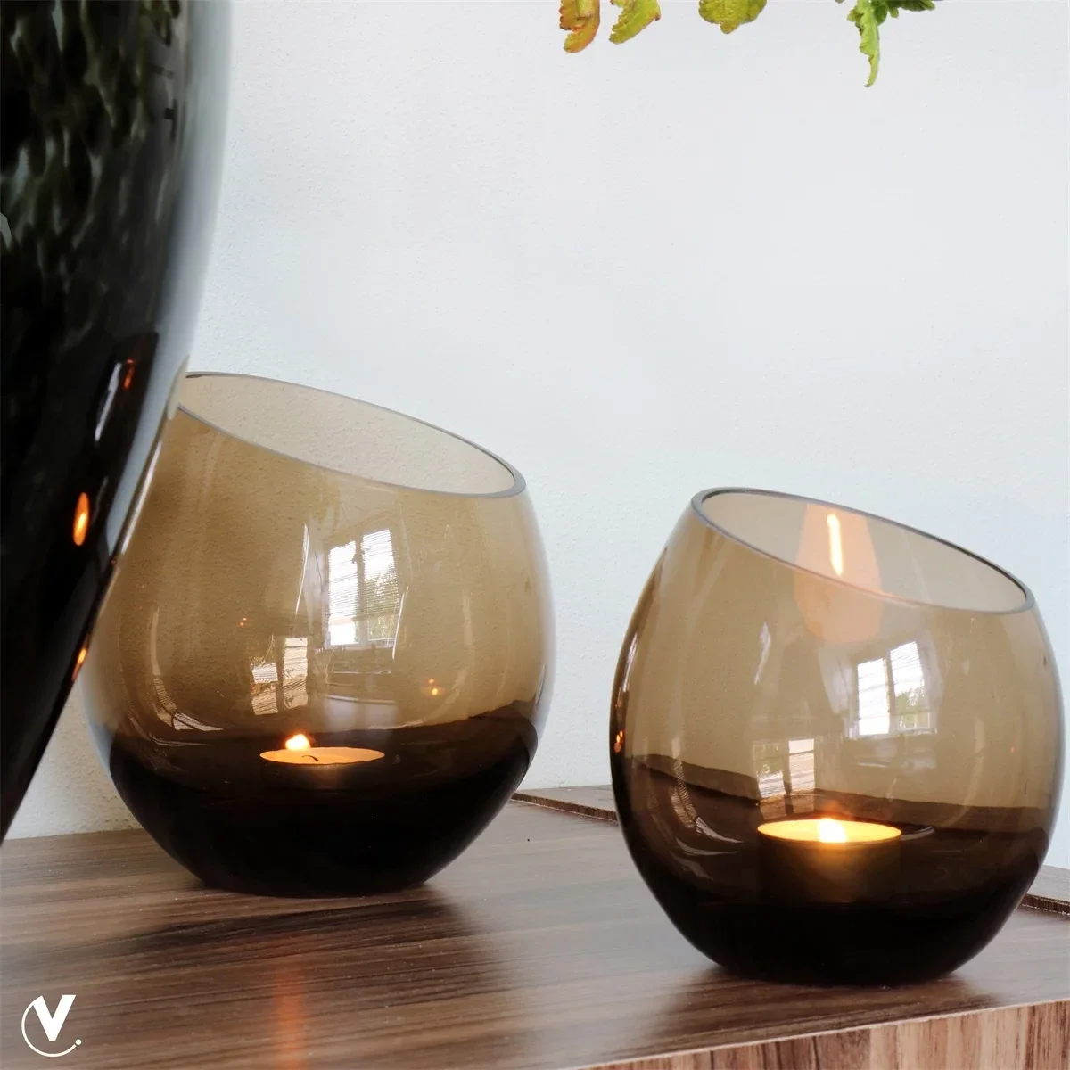 Windlicht Taupe Smoke Glas ‘Moho’ | Verkrijgbaar in 2 maten
