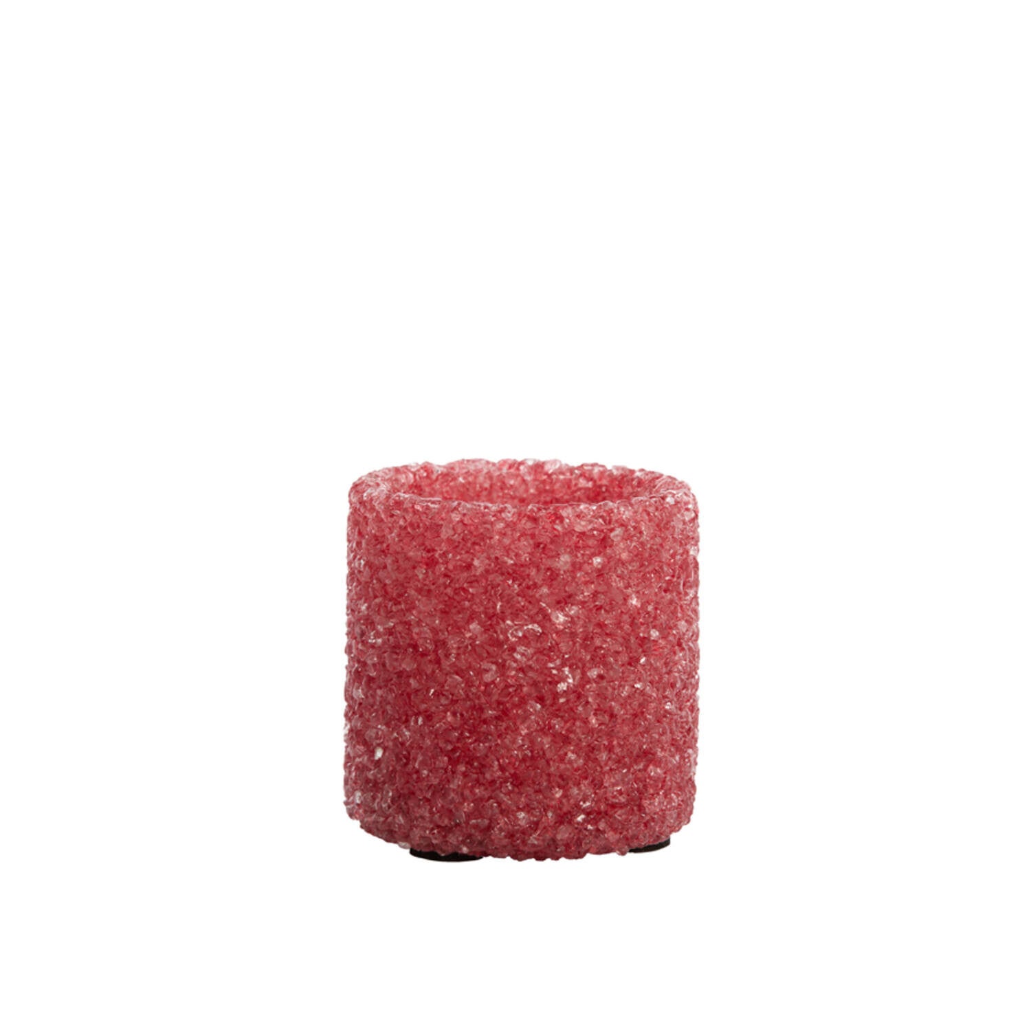 Breng zachtheid en glamour in huis met de waxinelichthouder ‘Morita’ in roze. Deze sfeervolle houder is rijkelijk bedekt met kleine glasstukjes die samen een fonkelend mozaïek vormen. Wanneer je er een waxinelichtje in plaatst, verspreidt hij een warm en sprankelend licht – perfect voor een romantische of chique uitstraling.