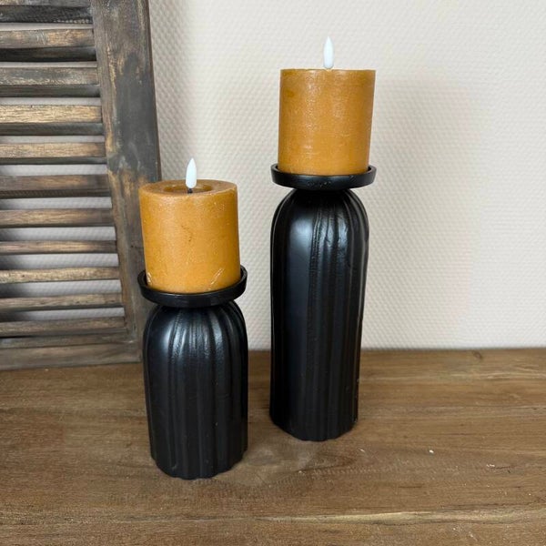 Deze zwarte aluminium kandelaar is geschikt voor kaarsen met een diameter van 7,5 cm. Voor een veilig en onderhoudsvrij alternatief combineer je deze kandelaar met onze Countryfield LED kaarsen.