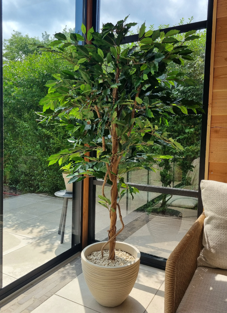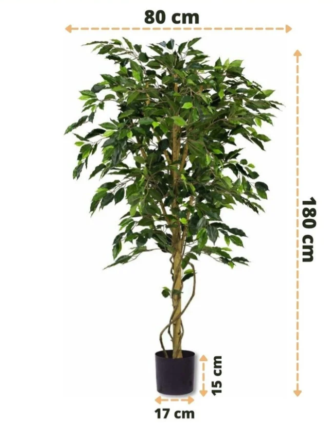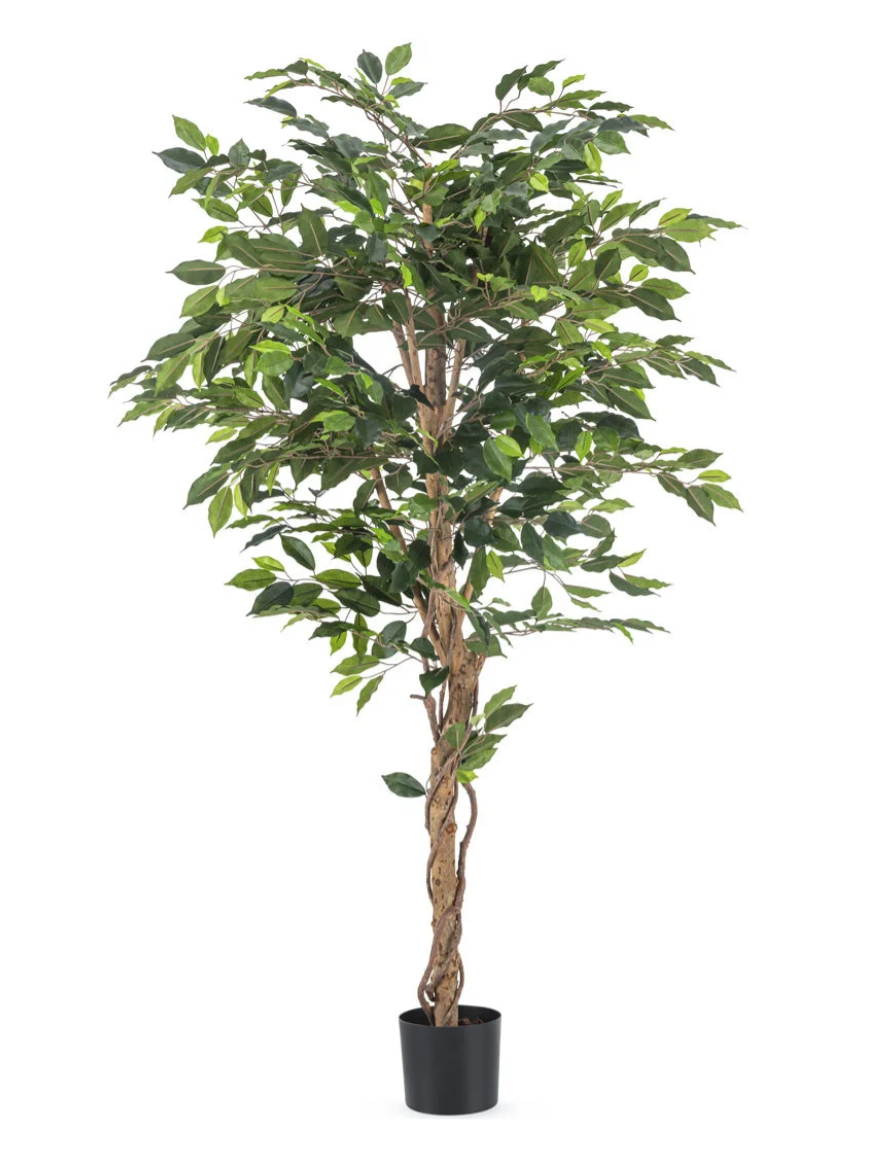 De Ficus staat bekend om zijn zachte, frisse bladvorm en luchtige groeiwijze. Onze kunstvariant is een perfecte imitatie van de populaire groene ficus, met een robuuste stam en fijn gedetailleerde bladeren die levensecht ogen – zonder dat je ooit hoeft te snoeien of water geven.