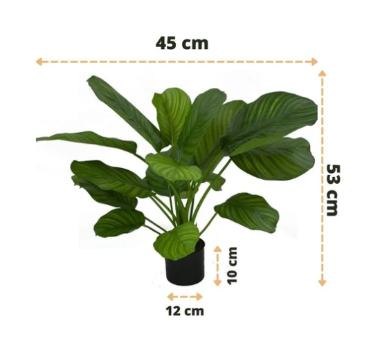Breng verfijnde tropische flair in huis met de kunstplant Calathea Fasciata van 53 cm. Deze compacte, maar opvallende plant valt op door haar ronde, brede bladeren met prachtig zilvergroen patroon en diepgroene nerven. Een echte blikvanger op tafel, in een open kast of op een stijlvolle plantstandaard.