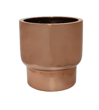 Deze koperen bloempot is gemaakt van lichtgewicht, duurzaam materiaal en is geschikt voor zowel binnen- als buitengebruik. Dankzij de UV- en vorstbestendigheid (getest tot -18°C) blijft de pot er prachtig uitzien onder alle weersomstandigheden. Voor buitengebruik adviseren we om een gat in de bodem te boren voor goede drainage.