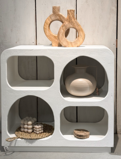 Ontdek de kracht van eenvoud met deze compacte Japandi vakkenkast van hout. Een stijlvol, functioneel meubel dat warmte en minimalisme perfect combineert.