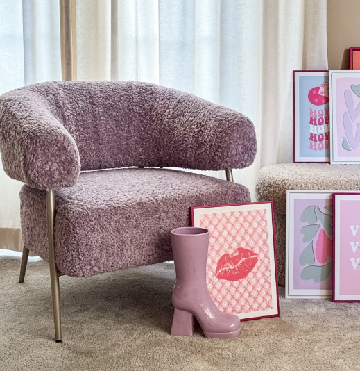 Fauteuil Zola is ontworpen voor wie comfort wil combineren met uitgesproken stijl. De plush bekleding in lila/rose voegt een warme en levendige touch toe aan neutrale interieurs, maar past ook perfect in een kleurrijk of eclectisch geheel. Dankzij het compacte formaat is de stoel ook geschikt voor kleinere ruimtes, zonder in te leveren op uitstraling.