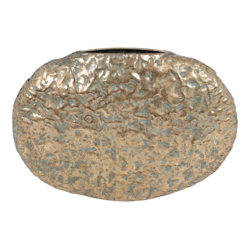 Metalen Vaas ‘Lisa Lois’ | Bronzey Gold | Luxe Platte Vaas 40 cm