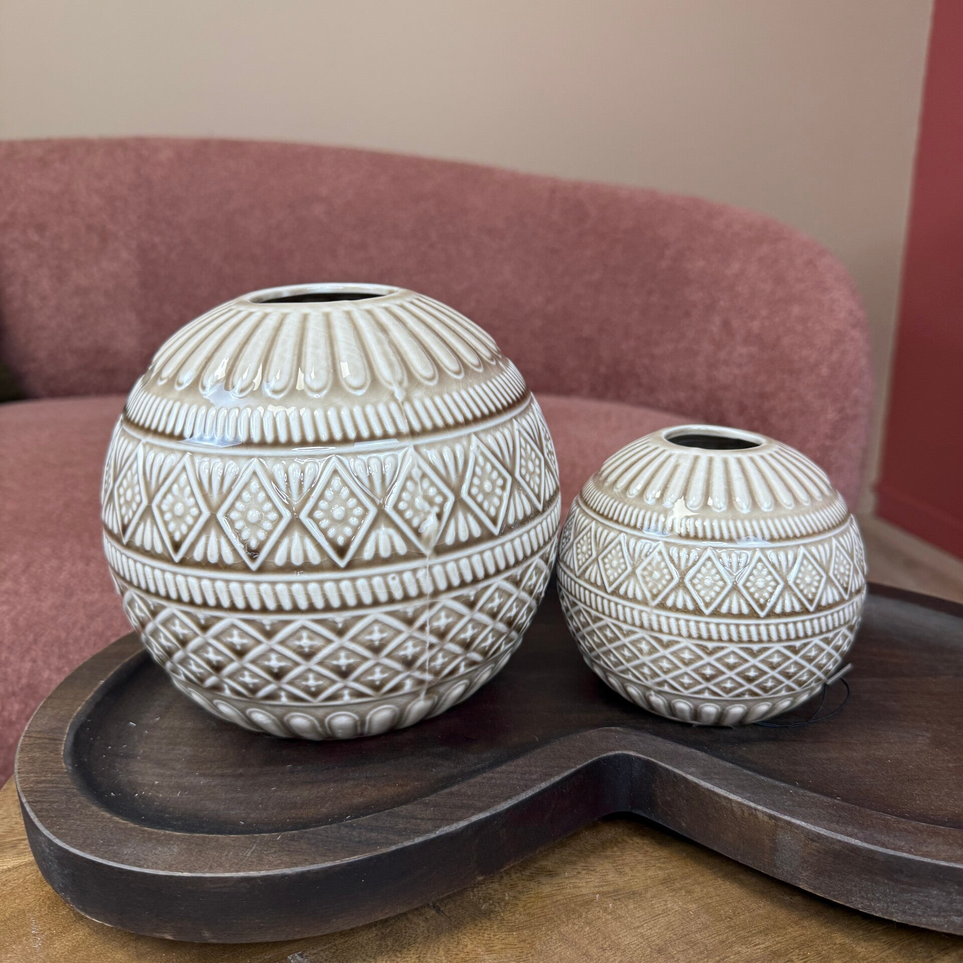 Bol Vaas Ibiza Taupe | Ronde Vaas met Crème Accenten | In 2 Maten