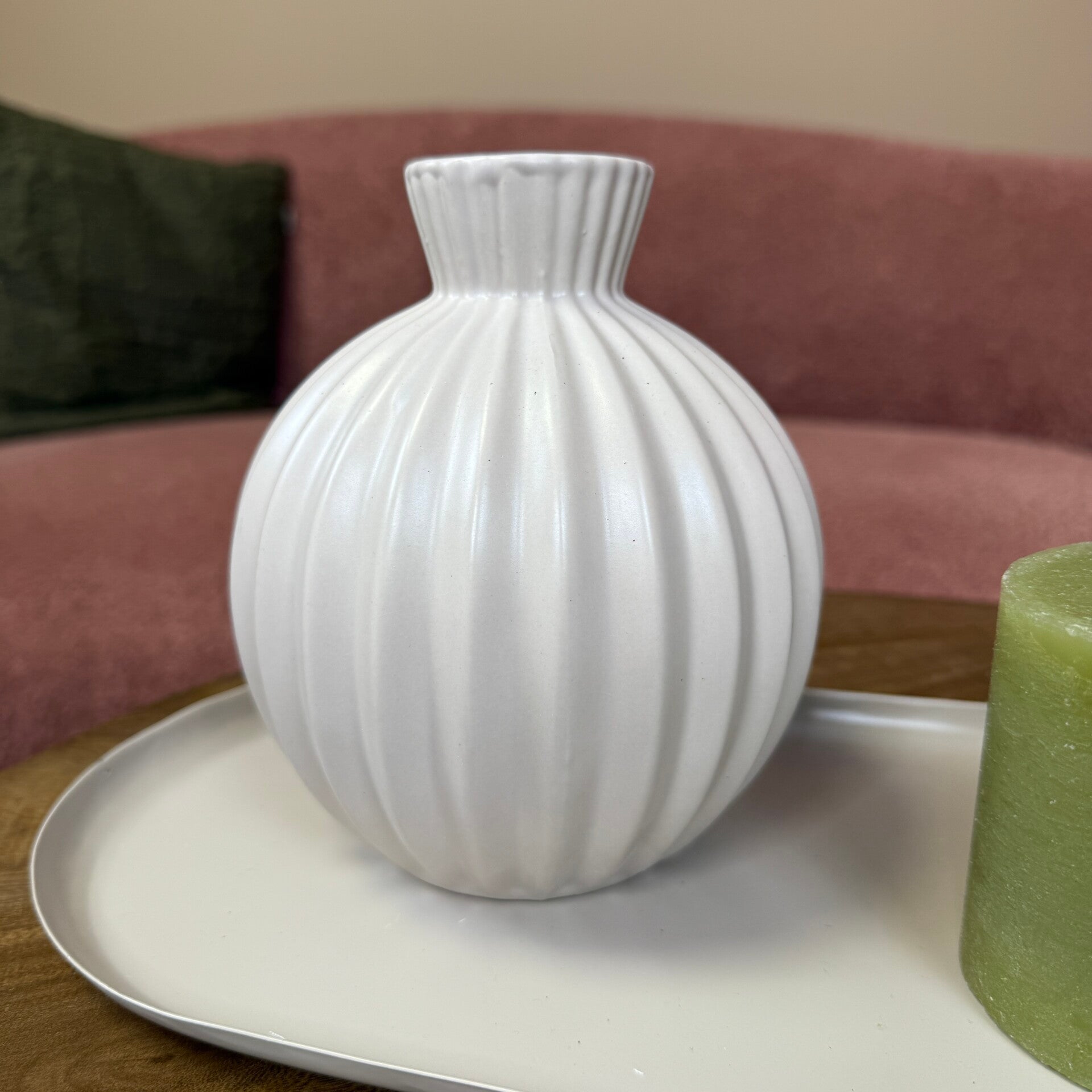 Combineer dit vaasje met andere ribbel- of bolvormige vazen voor een speels geheel.