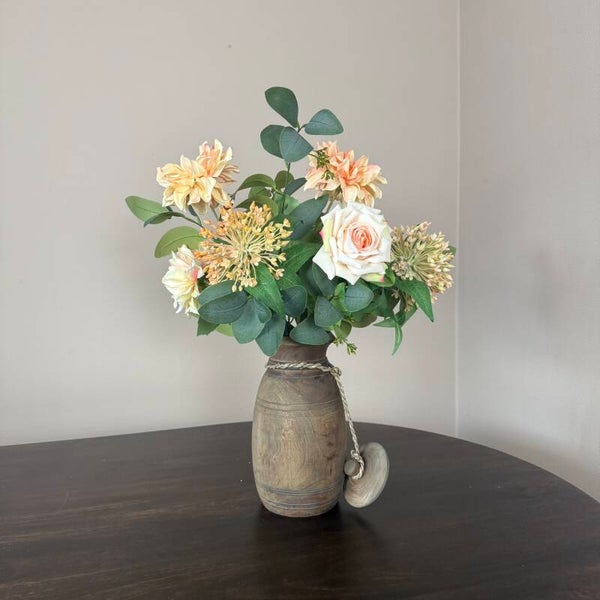Houten Pot Inclusief Zijden Bloemen Boeket