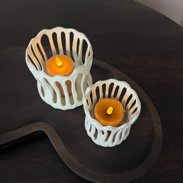 Waxinelichthouder 'TIVOLI' | Creme | In 2 maten