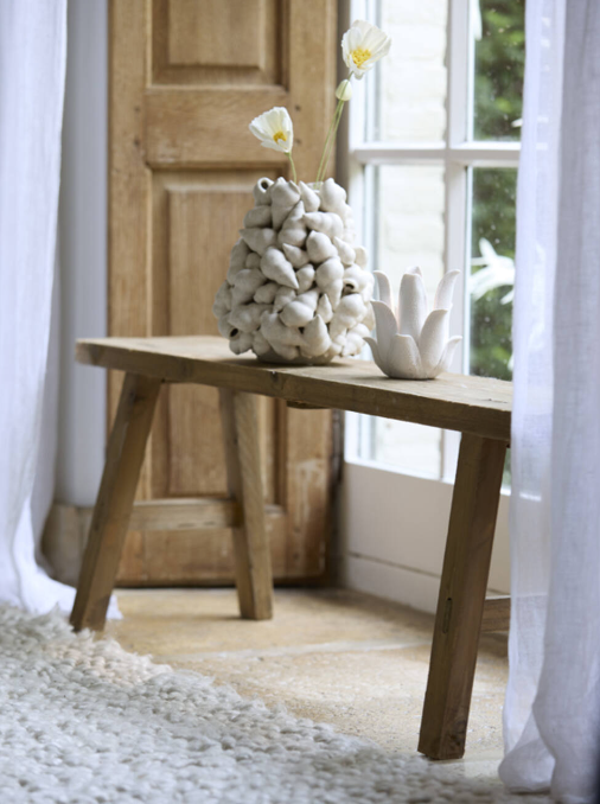 Of u het nu gebruikt als houten decoratie bankje voor de slaapkamer, als stijlvolle sidetable in de hal of als bankje voor woondecoratie in de woonkamer, de SAFANE brengt sfeer, warmte en functionaliteit in uw interieur.