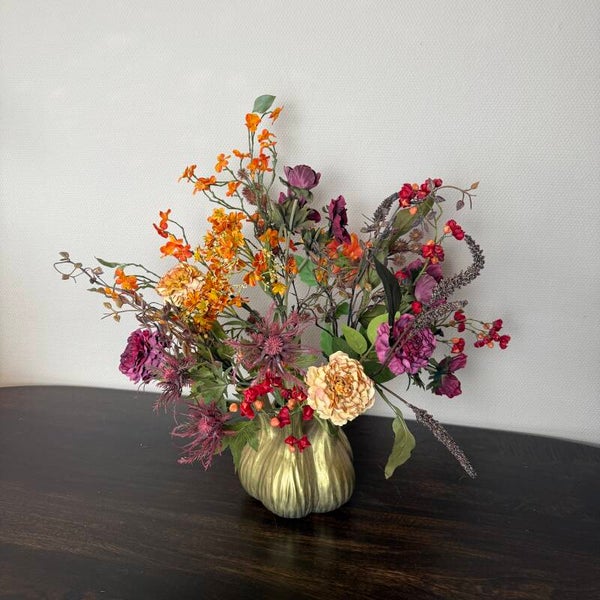 Toetervaas Goud Inclusief Zijden Bloemen Boeket