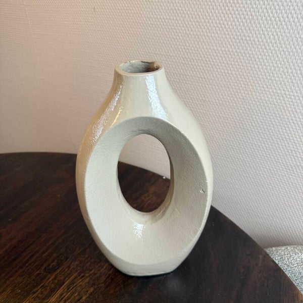 De donutvorm geeft deze vaas een moderne, speelse uitstraling die perfect past binnen hedendaagse interieurtrends. Dankzij het matte, zandkleurige effect straalt de vaas subtiele luxe uit — ideaal als losstaand decoratief object of gecombineerd met een paar stijlvolle droogbloemen of pluimen.