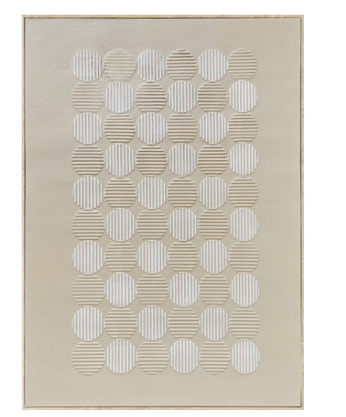 Het Schilderij ‘Dots’ Beige/Wit is een moderne interpretatie van rust en eenvoud — een verfijnd kunstwerk dat elke wand elegant versterkt.
