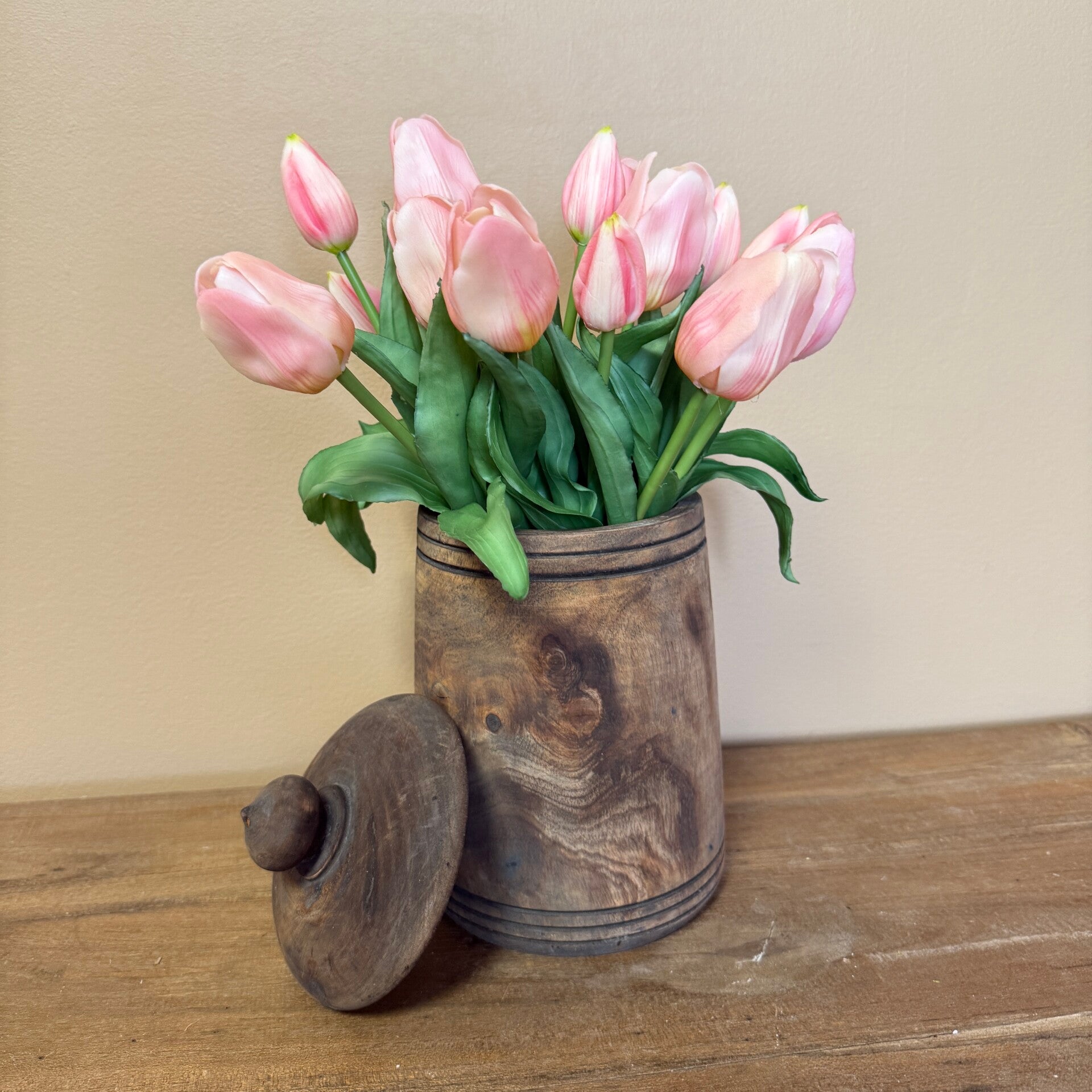 Houten Pot Inclusief Real Touch Tulpen