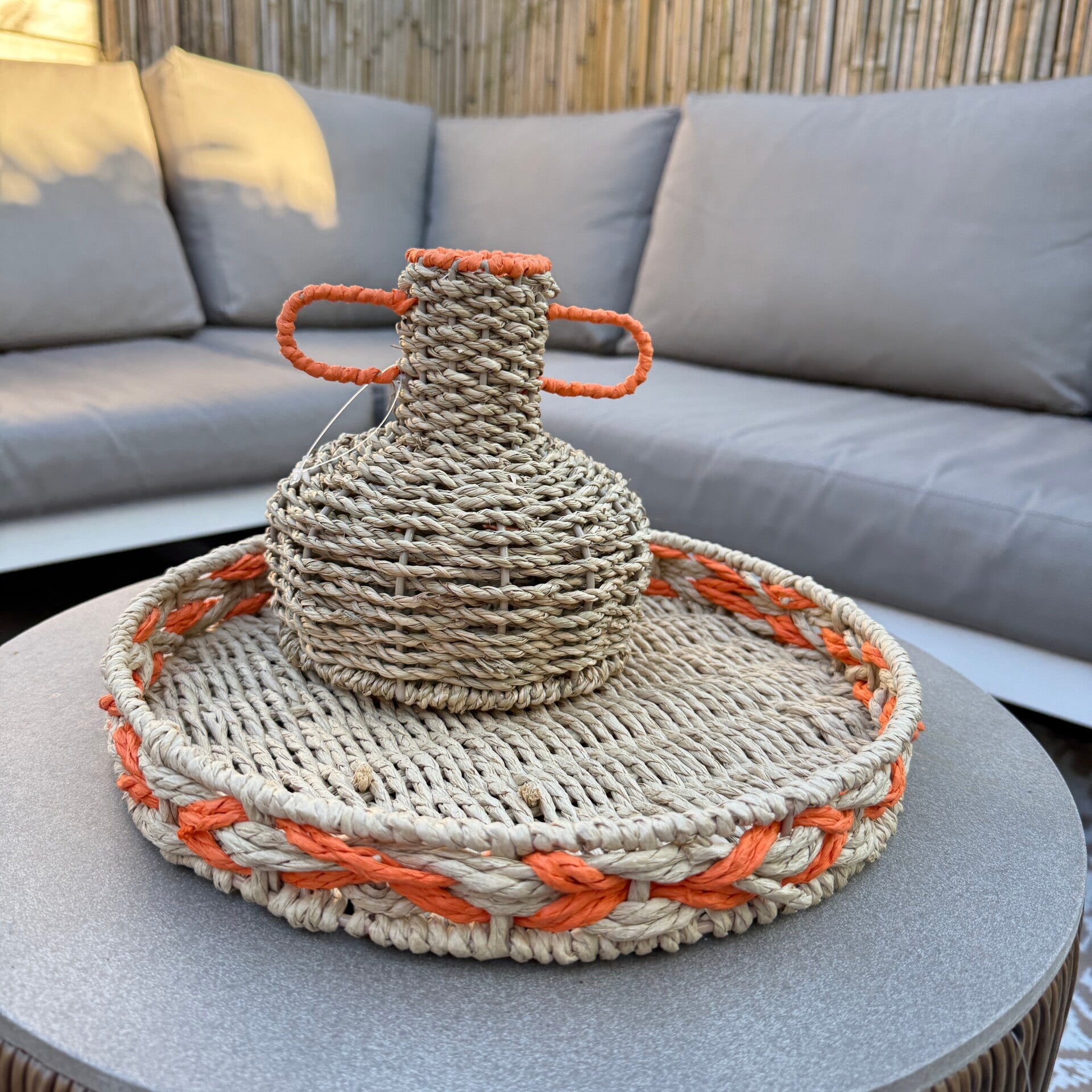 Rotan Dienblad Naturel/Orange | In 3 maten