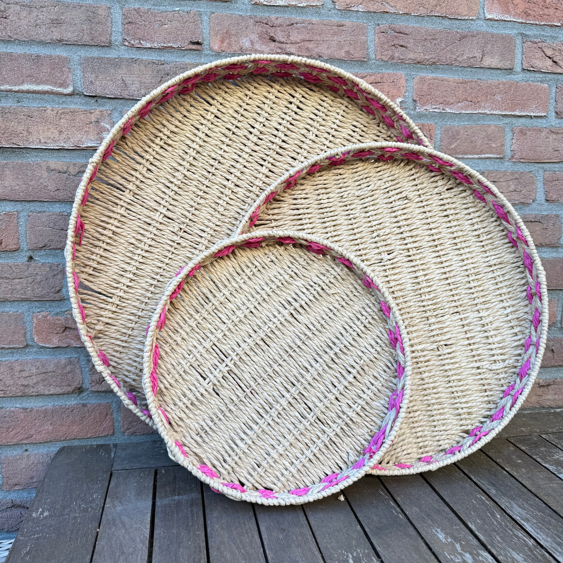 Rotan Dienblad Naturel/Fuchsia | In 3 maten