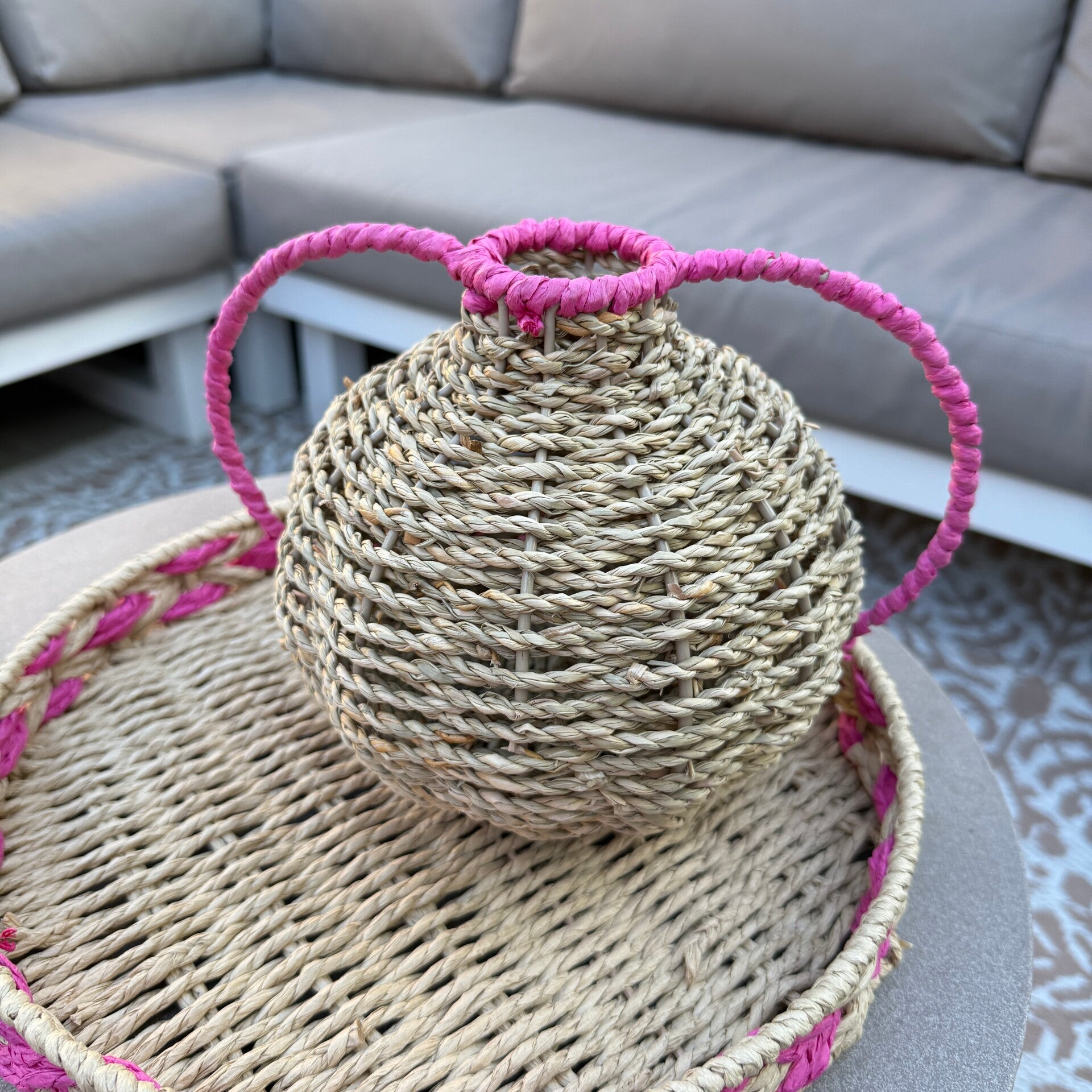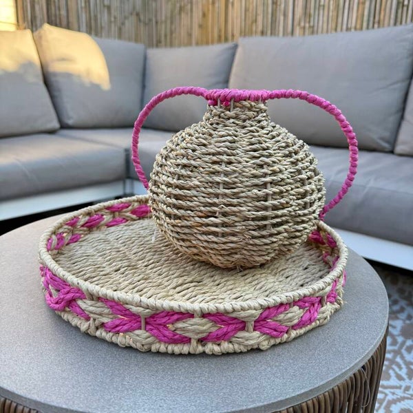 Rotan Vaasje Sea Grass Naturel/Fuchsia